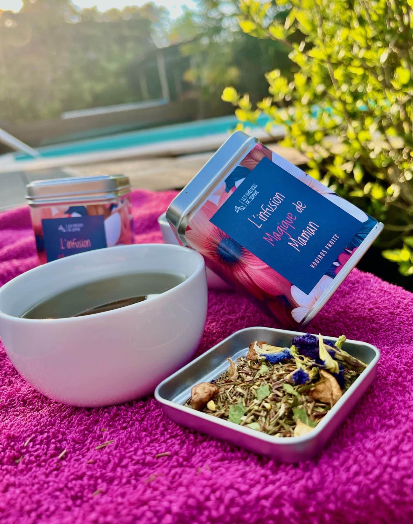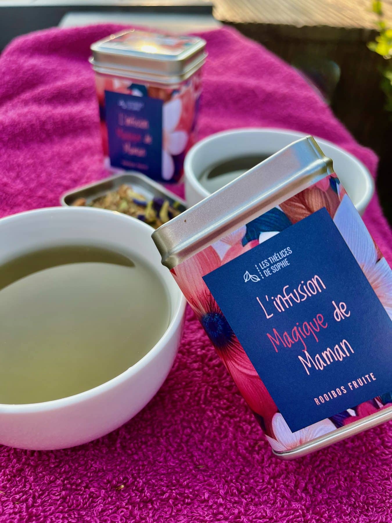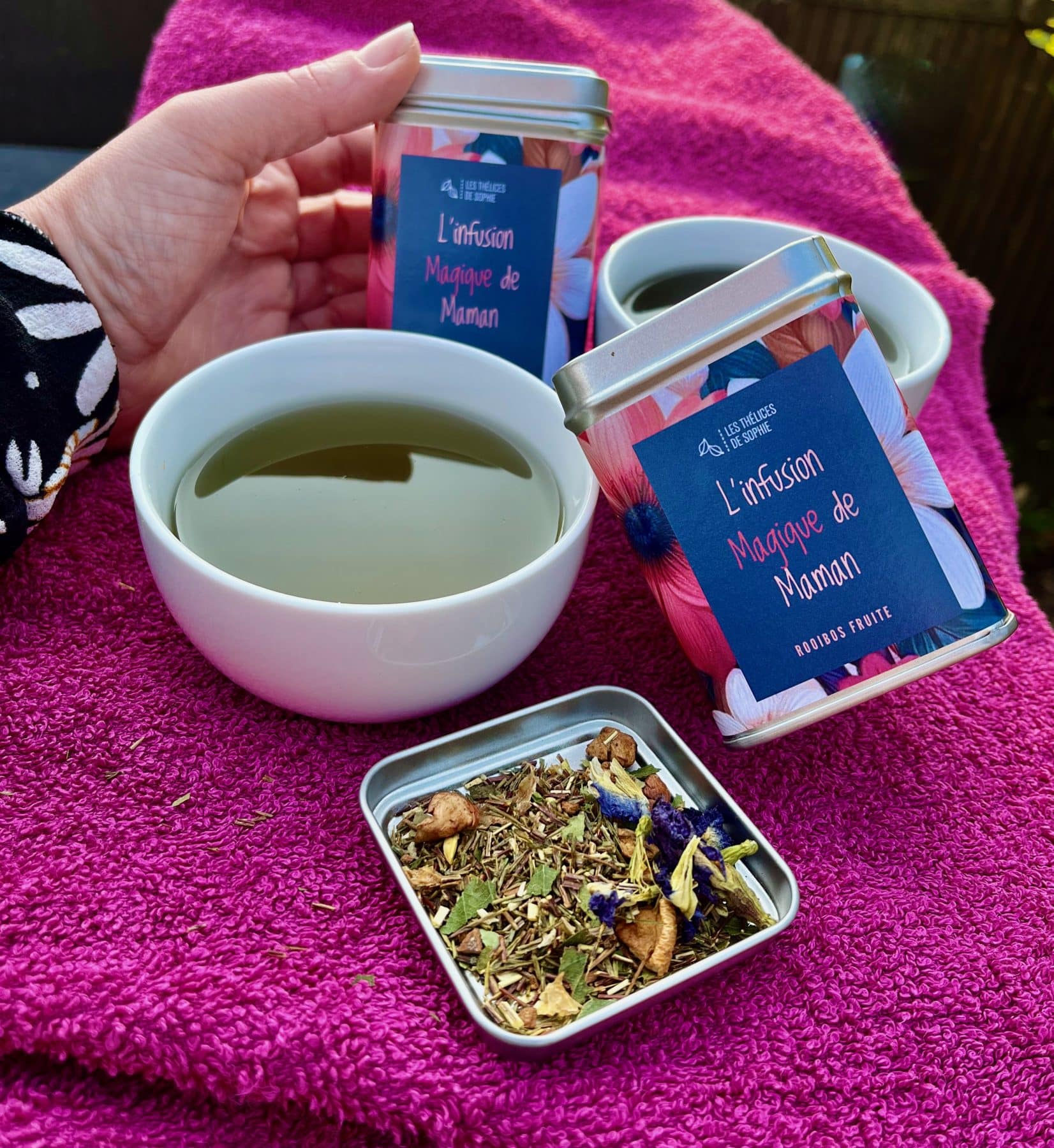 Elle est un peu MAGIQUE cette infusion de MAMAN. Elle apporte le soleil et elle fait voir la vie en mauve… un peu comme votre MAMAN, n’est ce-pas? Notre tout N.O.U.V.E.A.U est composé de (Ingrédients) 👩👧👦
